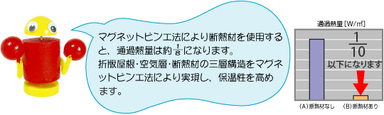 断熱材にマグネットピン金具を取り付けるだけで作業者の手を煩わせません。ビス1本使わないので、短期間で施工が可能です。